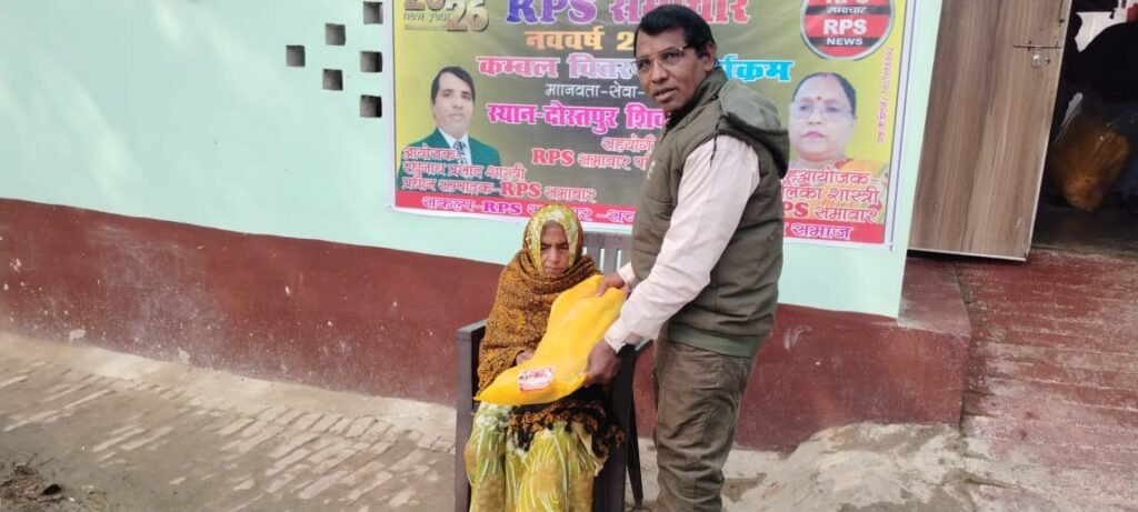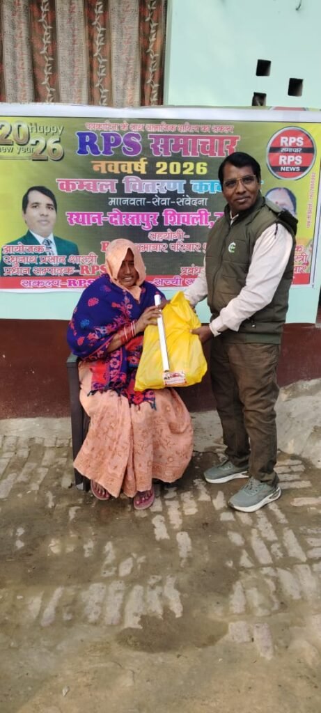 1 जनवरी 2026 को उन्नाव जनपद के दोस्तपुर शिवली गांव में समाजसेवा का अनूठा दृश्य देखने को मिला। हर वर्ष की भांति इस वर्ष भी RPS समाचार के प्रधान संपादक श्री रघुनाथ प्रसाद शास्त्री एवं प्रबंध संपादक श्रीमती मधुलिका शास्त्री के नेतृत्व में जरूरतमंद वृद्धों, असहायों एवं गरीब परिवारों को कई दर्जन कंबल वितरित किए गए।